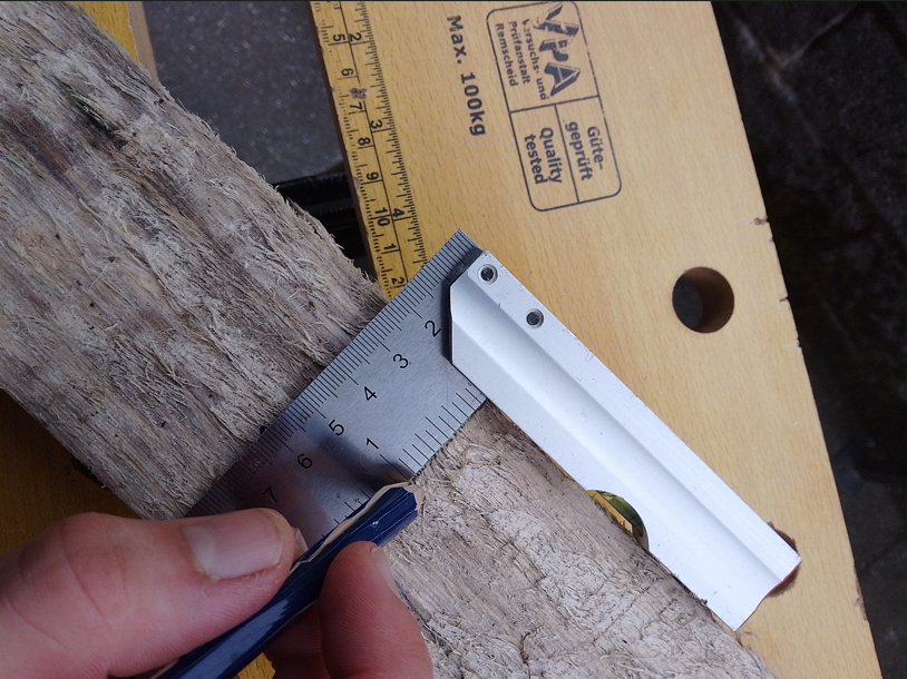 For this step you will need a tape measure, tri square and steel square. Wear safety gloves. Carefully use the tape measure to measure the wood to the correct lengths, then use the tri square and pencil to indicate where to cut the wood, label the pieces with there name and dimension and indicate what parts are offcuts. Take care when marking out angled sections. For the dimensions please see the cutting list as follows: