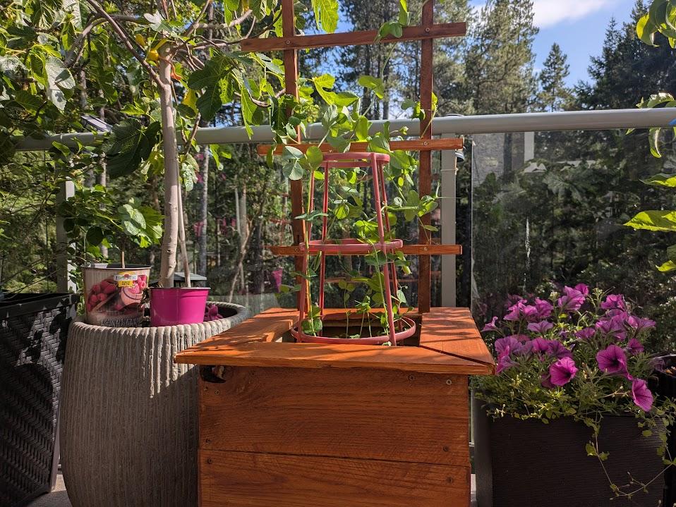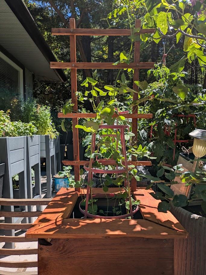 The other day, I was out on my deck when I saw that one of my Mom’s planter boxes was just plain metal wire, and the trellis was zip-tied leaning back. It doesn’t look good.
