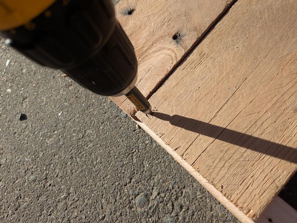 I laid down 4 panels, adding the supports on their edges to ensure it was the same size and aligned. Afterwards, I started screwing in the panels to the supports. It’s best to make the sides first and then have them stand up and screw on the panels for the other side.