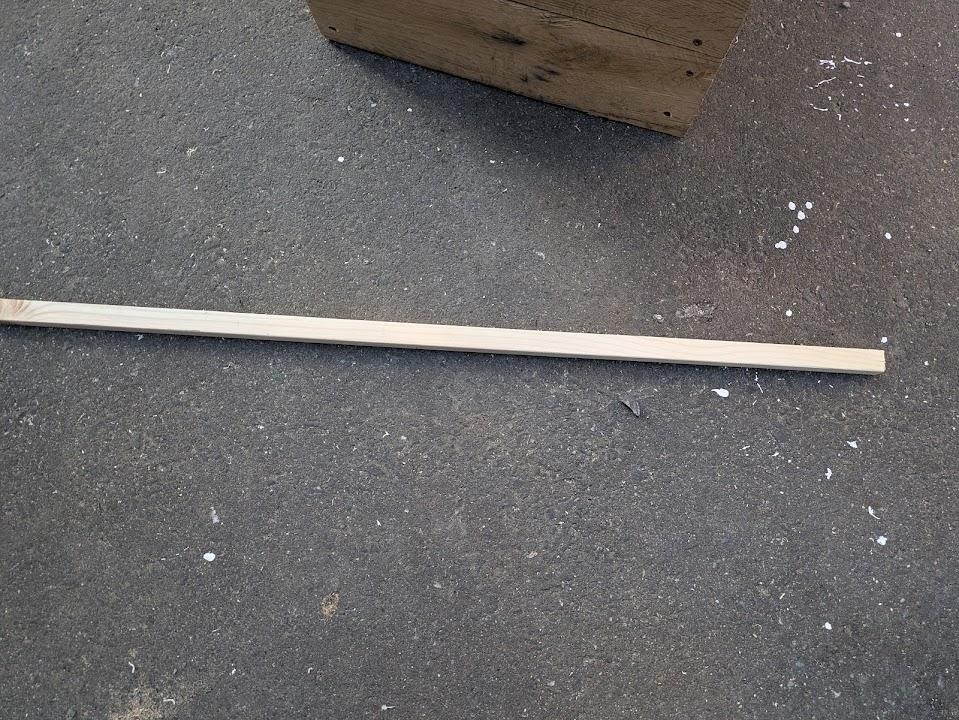 I wanted to add a little trim to the top using a cut called a miter cut. It’s a pretty cool name. Well, for this step, I grabbed another pallet and took it apart, and afterwards I measured 16 inches on one side. Because I wanted it to be an inch off the edge, I made it 18 inches. Same for the other side, although it was about 17 1/2 inches originally, so I made it 19 1/2 inches.